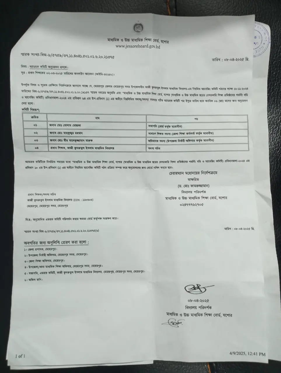 অ্যাডহক কমিটির সদস্যগণের নাম ও পদবী